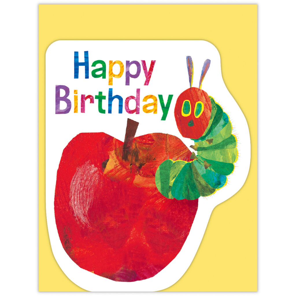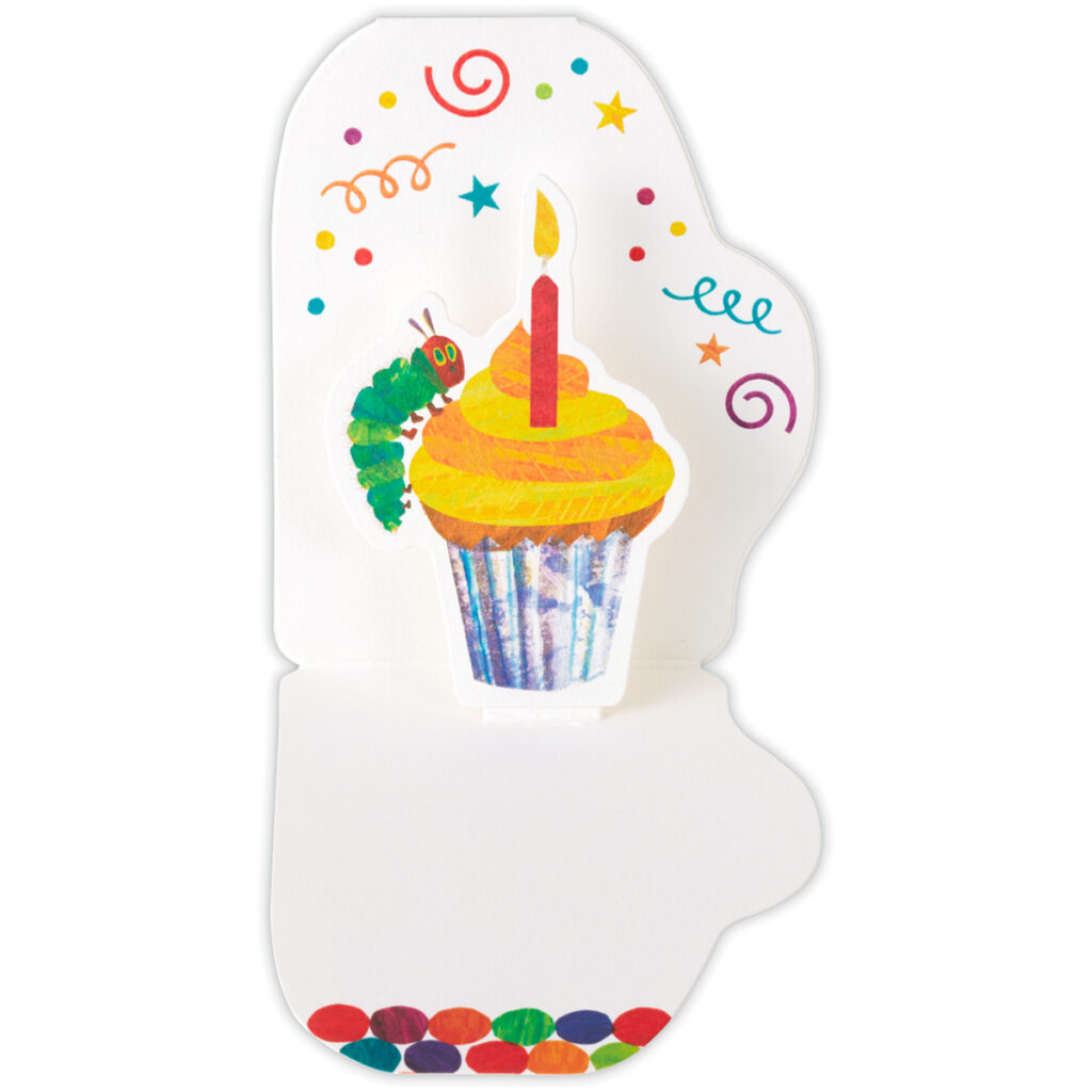 存在感あるダイカットタイプの「HCカット・バースデーリンゴ」は、カードを開くとあおむしとカップケーキがポップアップ。誕生日のお祝いにぴったりのデザインです。